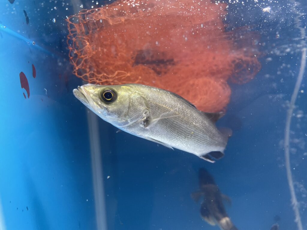 お客様からもシロギスを見れたことが驚きだったとの感想をいただきました。直接「生きている姿ははじめて見た!」とのお声も。また本展示は屋外であるため、展示内に太陽光が差し込み、銀色の魚体がギラギラと輝く美しいシロギスを観察することが出来ました。